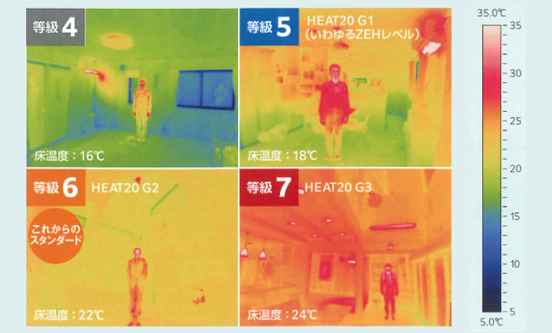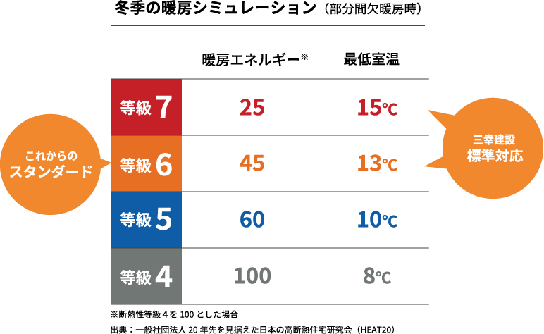 等級が上がるほど、室温が下がりにくく・エネルギー消費が少なくなる。