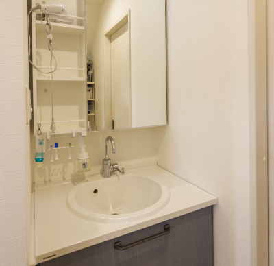 奥様のお気に入りはランドリールーム。「クローゼットも併設したので、洗う、干す、畳む、しまう、の動作が1カ所で完結できるのがいいですね」。ダイニングテーブルの横にある造作カウンターも、「パソコンやお化粧など、家事の合間にちょっとした作業が気軽にできて便利です」と満足げに話されました。