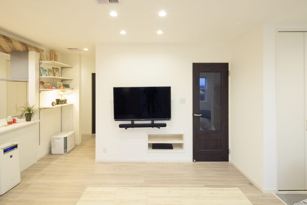 ご主人:家のベースカラーは白でシンプルに、家具や建具で部屋にアクセントを付けました。リビングドアはガラス面積が大きいデザインが気に入って取り付けましたが、ガラスの透け感が部屋の空間を広く見せてくれる効果もありました。