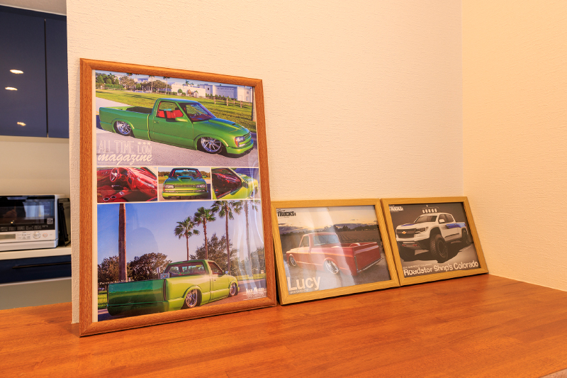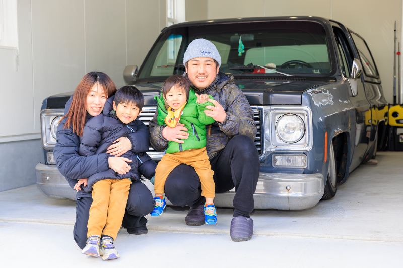 インタビューが終わると、ガレージで子ども用の車に乗って遊んでいる息子さんの姿が。父と母の思いが詰まったマイホームで、父のDNAを受け継いでガレージライフを満喫しているようでした。