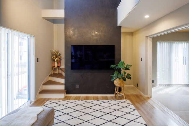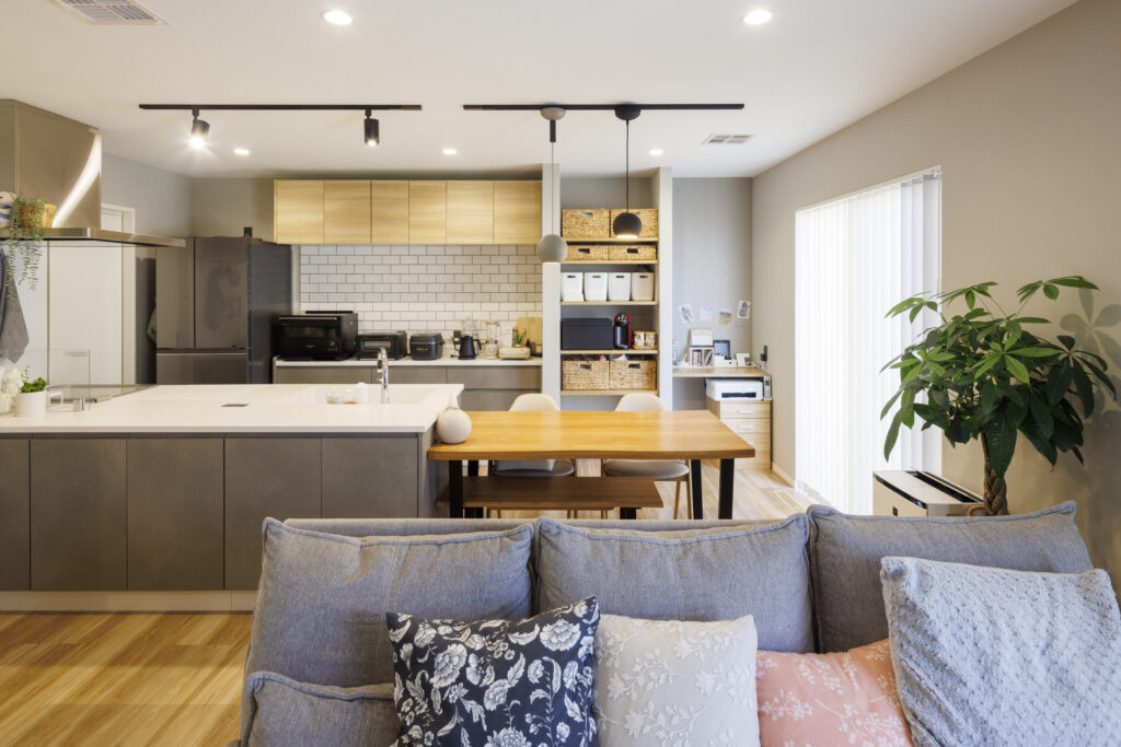 M様邸の内装は、外観同様に洗練さと温かみが融合され、居心地のよい空間を演出しています。設計士と打ち合わせを何度も重ね、室内カラーは奥様が希望されたグレーがベース。