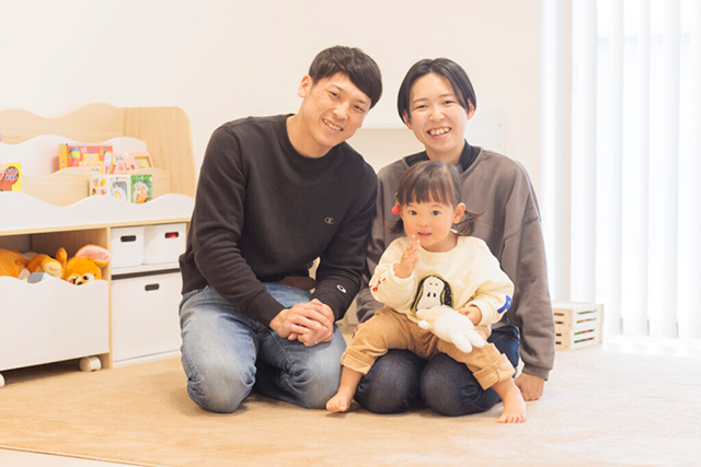 三幸建設を家づくりのパートナーに選んだのは、「知人が三幸さんで家を建てたのですが、全館空調システムが魅力的で」とご主人。家庭用エアコン1台で家全体を快適な温度に保つことができ、「暮らし始めてその良さを実感。玄関に入った瞬間から家の中が暖かくて」と話します。「空気を24時間365日循環してくれるので、花粉症でアレルギー持ちの僕としてはこの点も気に入っています」とも。「ハウスメーカーに比べて導入費用を節約でき、予算に合わせた家づくりが叶いました」と、コストパフォーマンスの高さにもご満悦の様子です。